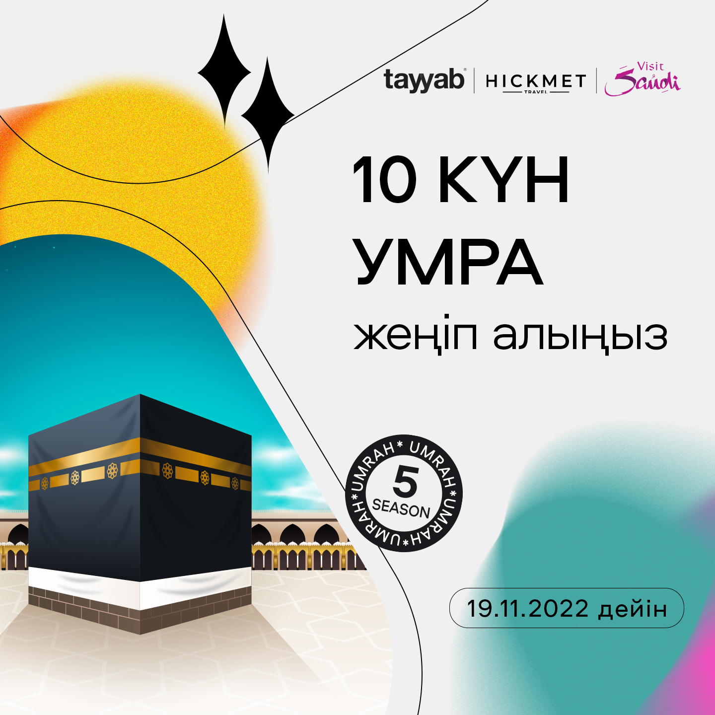 19 қарашаға дейін Tayyab қосымшасын жүктеу, Tayyab картасын шығару және 1000 ₸ бастап кез келген төлемді жасау (кез келген Tayyab картасымен: дүкендер, мейрамханалар, ЖҚС, ұялы байланысты төлеу және т.б. аударымдардан басқа).